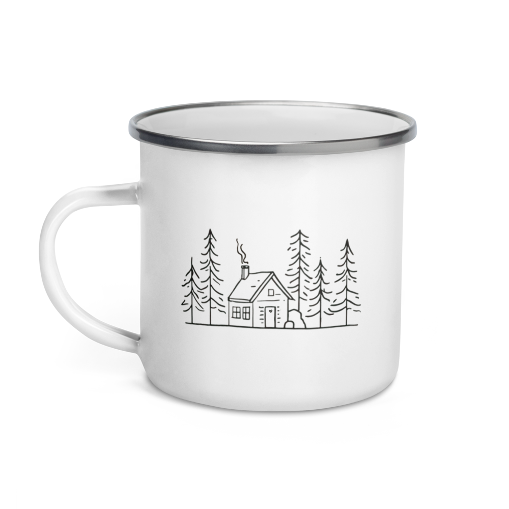 Bring a touch of cabin charm to your morning routine with the Woodland Cabin Enamel Camping Mug, featuring a classic woodland illustration on a durable, lightweight enamel finish.
